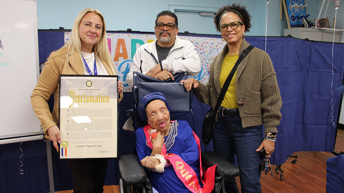 As part of the celebration, Ms. Augustin received a special message from the Office of New York City Mayor Zohran Mamdani recognizing her as one of the City’s oldest living New Yorkers and proclaiming March 24, 2026, as “Carmen Augustin Day”: